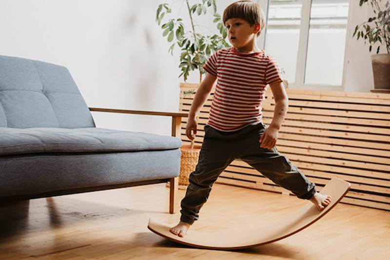 Für Kinder ist das Balanceboard ebenfalls ein großer Spaß – ob als Wippe, Brücke oder Tunnel. Es fördert spielerisch Motorik und Koordination und lässt sich umgedreht auch prima als Hocker zum Zähneputzen zweckentfremden.