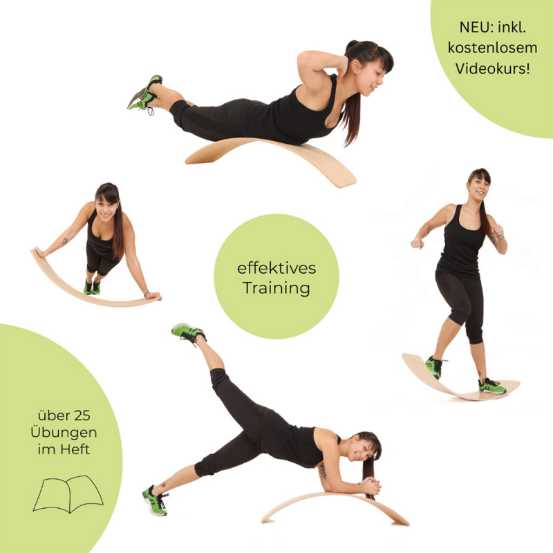 Gefertigt aus elf Lagen Buchenholzfurnier aus nachhaltiger Forstwirtschaft, mit natürlichem Leinöl behandelt. Die Korkstreifen schützen den Fußboden und das Brett vor Kratzern. Handgefertigt in Deutschland. Inklusive Anleitung mit Fitness-, Gymnastik- und Yogaübungen und Onlinekurs mit sechs Einheiten (je 30 bis 45 Minuten) aus dem Leipziger Yogastudio Element Ost.