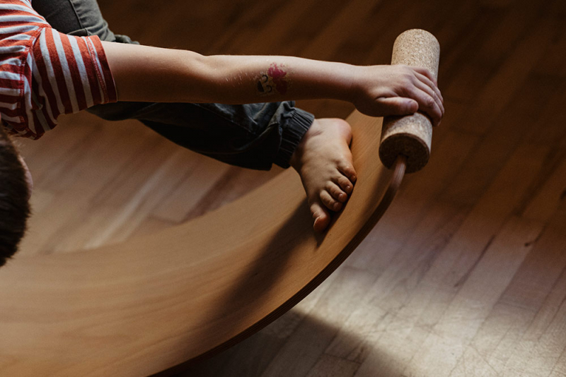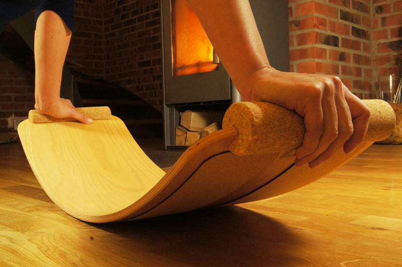 Die Rollen aus hochwertigem Naturkork lassen sich mühelos an den Rand des Balanceboards stecken und sind ergonomische Handgriffe und Bodenschutz zugleich. Sie sorgen für zusätzliche Stabilität, etwa beim Liegestütz, und verhindern das Wegrutschen des Bretts, wenn es umgedreht ist. Kinder klemmen sich dank der Rollen keine Finger – und dank der hervorragenden Dämpfungseigenschaften von Kork werden nicht nur der Boden, sondern auch Nachbars Nerven geschont.