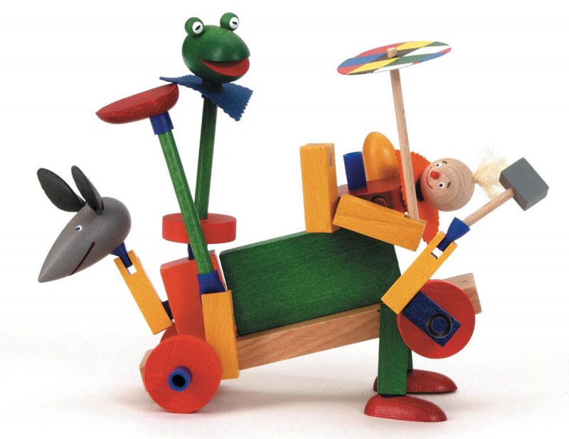 Aus heimischem Buchenholz, handbemalt mit lösungsmittelfreien Farben, Verbindungselemente aus lebensmittelechtem Kunststoff. Ab 3 Jahren.