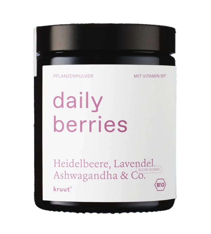 Zutaten: Wilde Heidelbeere (91%), Brombeere (3%), Lavendel (2,6%), Melisse, Ashwagandha (0,5%), Lions-Mane-Extrakt (0,1%), Baldrian, Spinat-Extrakt (0,022%)